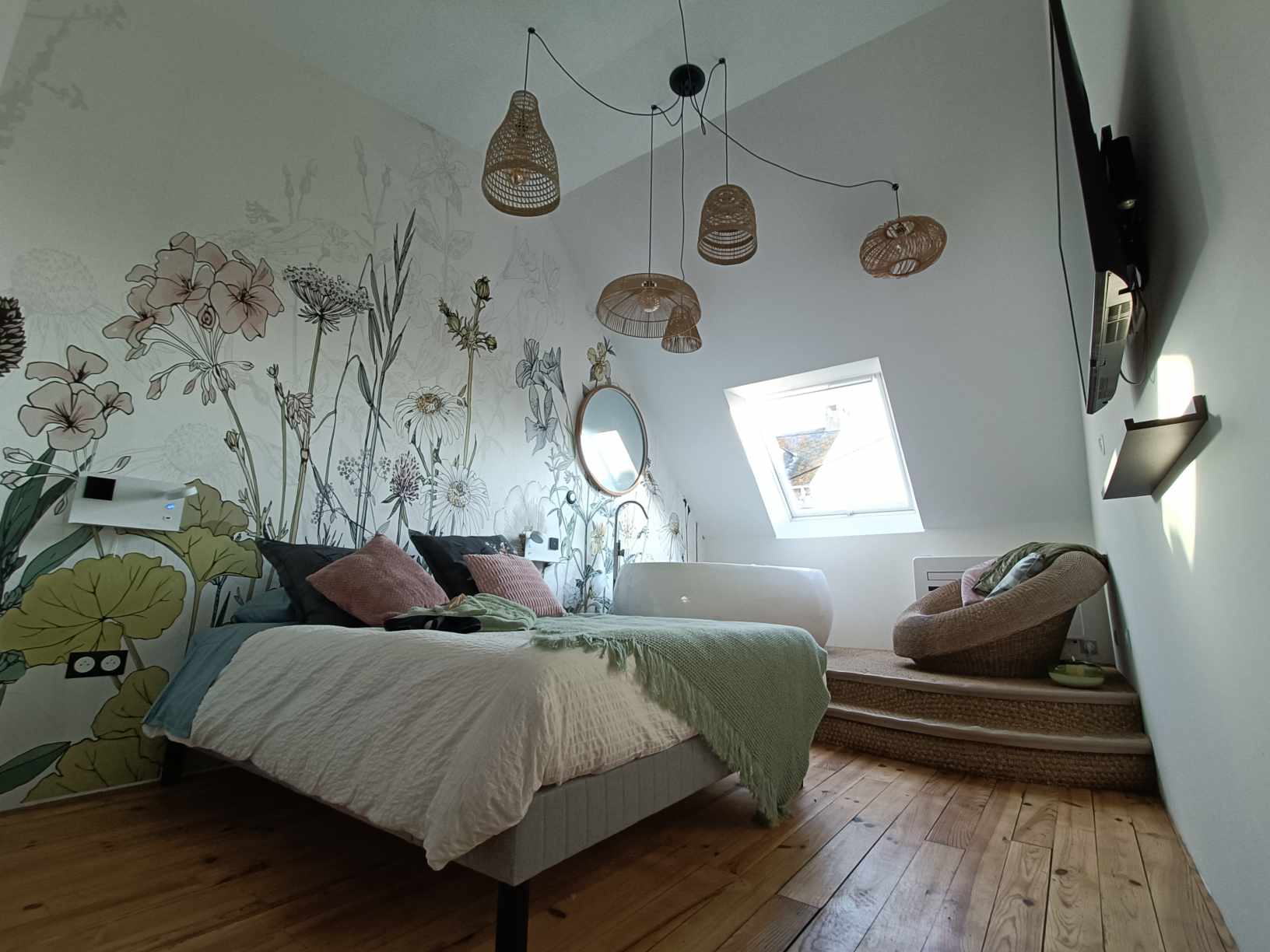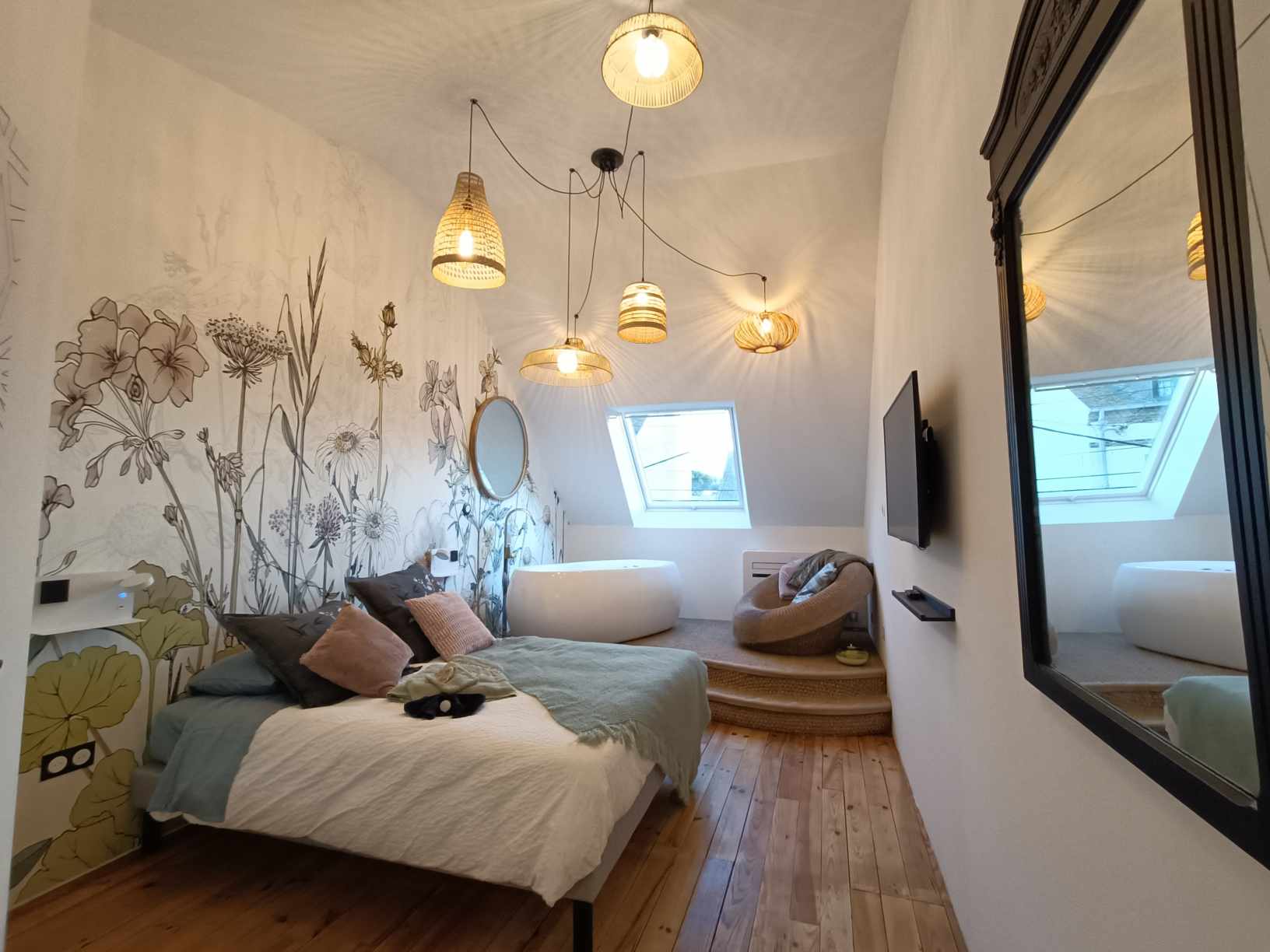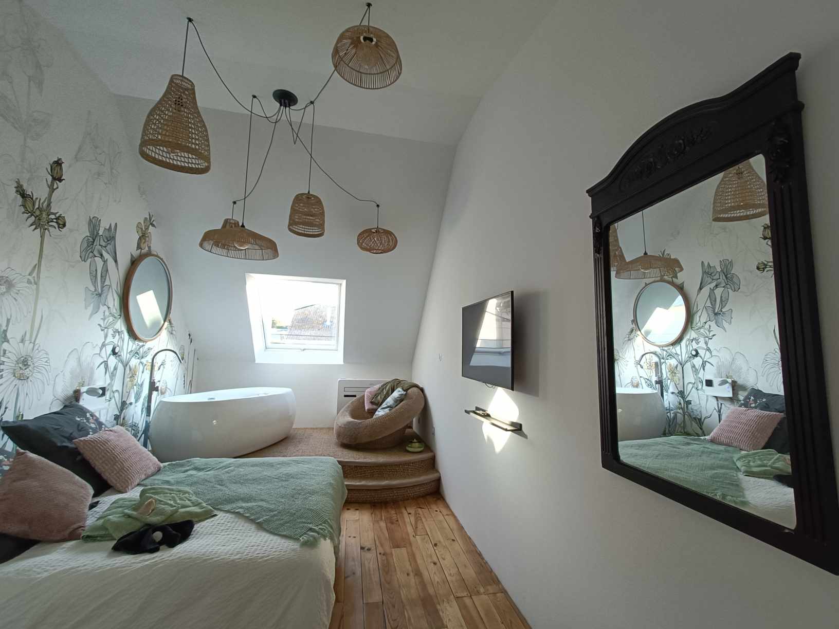 La chambre est équipée d’un grand lit confortable, d’une baignoire balnéo, d’une salle de douche moderne et de la climatisation. Tout est conçu pour vous permettre de vous évader du quotidien et de profiter pleinement de votre séjour.